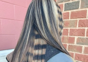 Окрашивание под енота (Raccoon hair) — это креативная техника окрашивания, при которой на отдельных прядях создаются горизонтальные полосы. Чередование светлых и тёмных (или ярких цветных) сегментов делает прядь похожей на полосатый хвост енота.