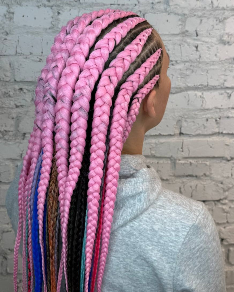 Брейды на теменной зоне - 8-10 шт. (или простой рисунок), афрокосы на затылке - 20 шт. Длина - до лопаток. 360 гр канекалона: 4 пачки EASY braids
