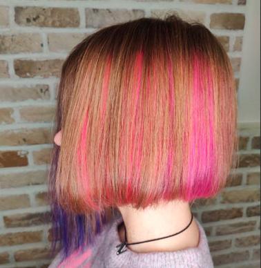 - Вся голова — вся масса волос окрашивается в один или несколько ярких оттенков. Дольше всего по времени и самый большой расход материала, поэтому цена выше.